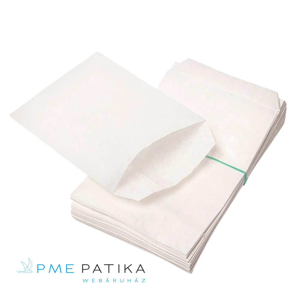 Megnevezés: Fehér színű, bélelt papír tasak, nyomat nélkül.